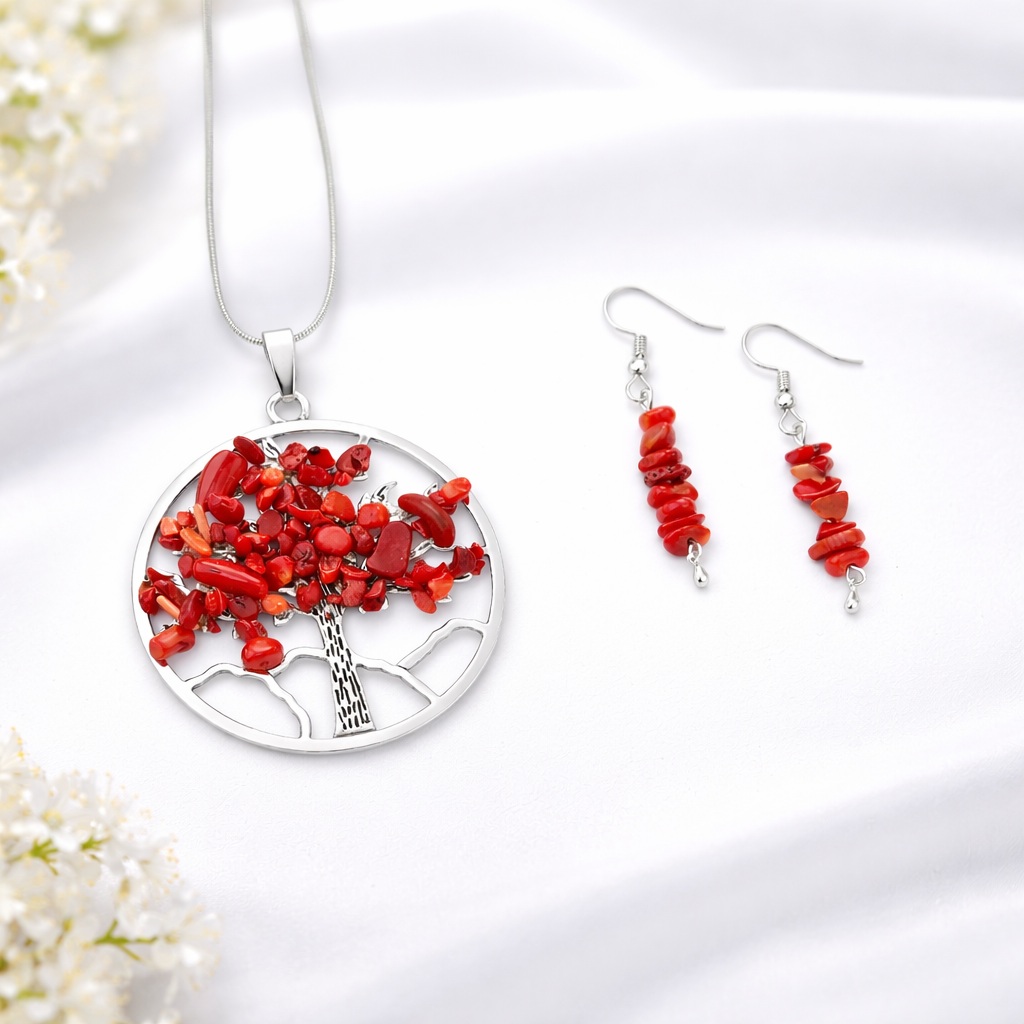 Set bijuterii Copacul Vietii cu Coral rosu